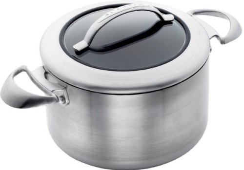 Scanpan CTX Dutch Oven is equally efficient as a sauce pot and a baker. Perfect for simmering stews and soups, baking casseroles and roasting vegetables or chicken. Multi-layer fused construction results in rapid and even heat distribution throughout the body of the cookware. Recycled aluminum core with Ceramic Titanium PFOA-Free Non-stick interior surface and 18/10 Stainless Steel exterior. Pan is oven and broiler safe so going from the stove top to the oven has never been easier. Stainless Lid features glass window to view cooking progress. Pan is easy to care for, require 5-second cleaning by hand or just throw it in the dishwasher - this pan will last a lifetime.