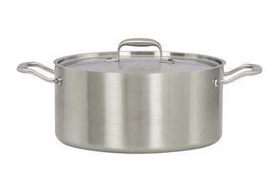 - 6-quart stainless-steel Dutch oven with aluminum core for fast, even heating